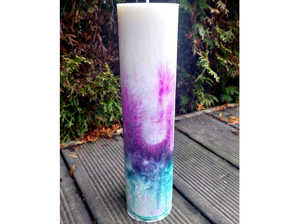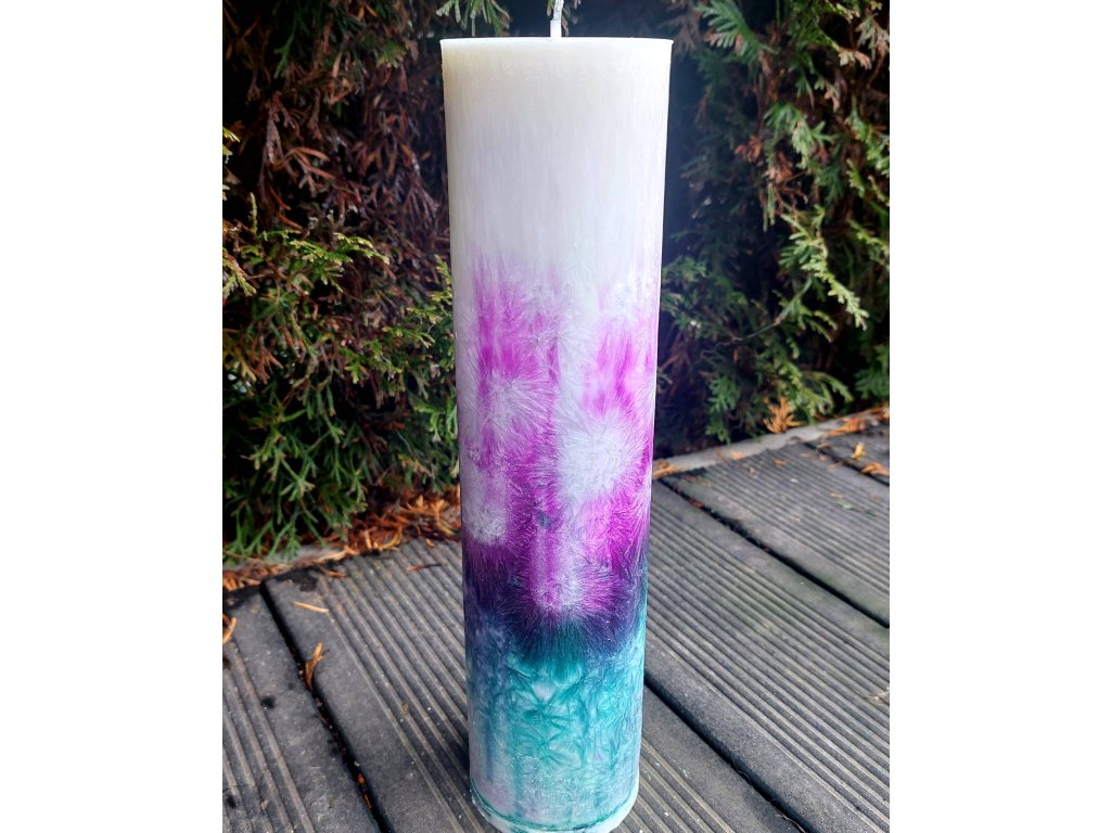 Tato dvoubarevná fialovo-smaragdový svíčka je silný Světelný průvodce, stvořený pro harmonizaci duchovní cesty s emocionálním životem. Ručně odlitá z palmového vosku, spojuje vysokou vibraci Kosmického vědomí (fialová) s hlubokou léčivou silou smaragdového Srdce. Dlouhá doba hoření je perfektní pro rituály pro hluboké uzdravení - léčení starých emocionálních zranění, které brání plnému spirituálnímu rozvoji a přijímání hojnosti lásky. Udržování otevřené a jasné komunikační linky s vaším vyšším Já. Pomáhá vám manifestovat život, který je v souladu s vaší nejvyšší pravdou a láskou.