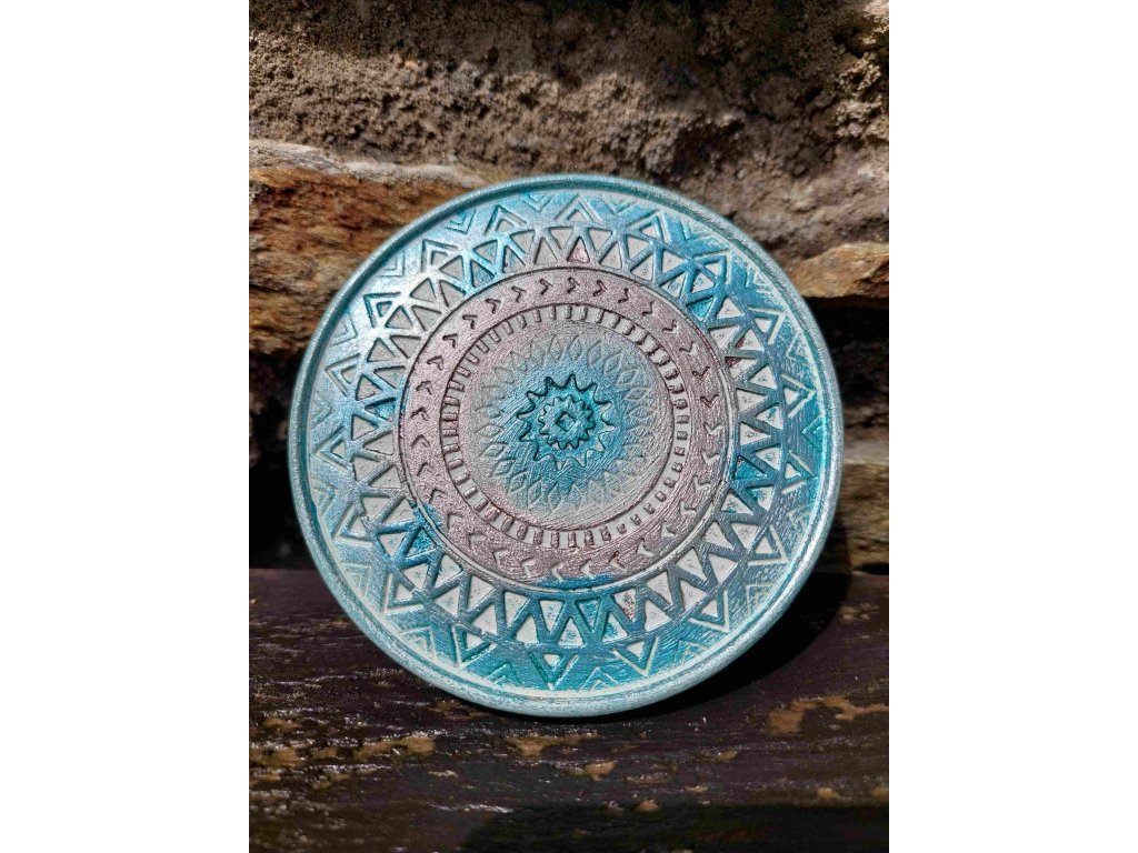 Sádrový podtácek je namalován akrylovými barvami a ošetřen vrchním lakem. Můžete je využít na svém oltáři, jako místo na uložení šperlů a krystalů.