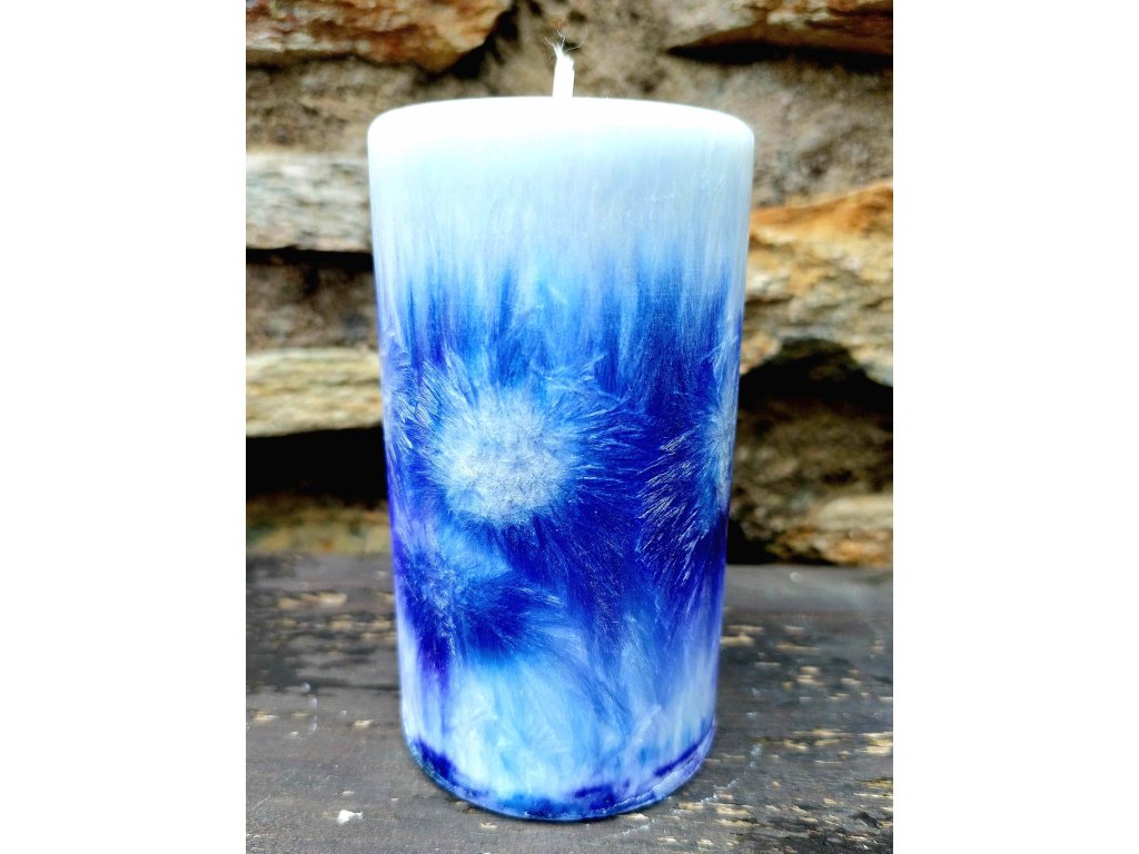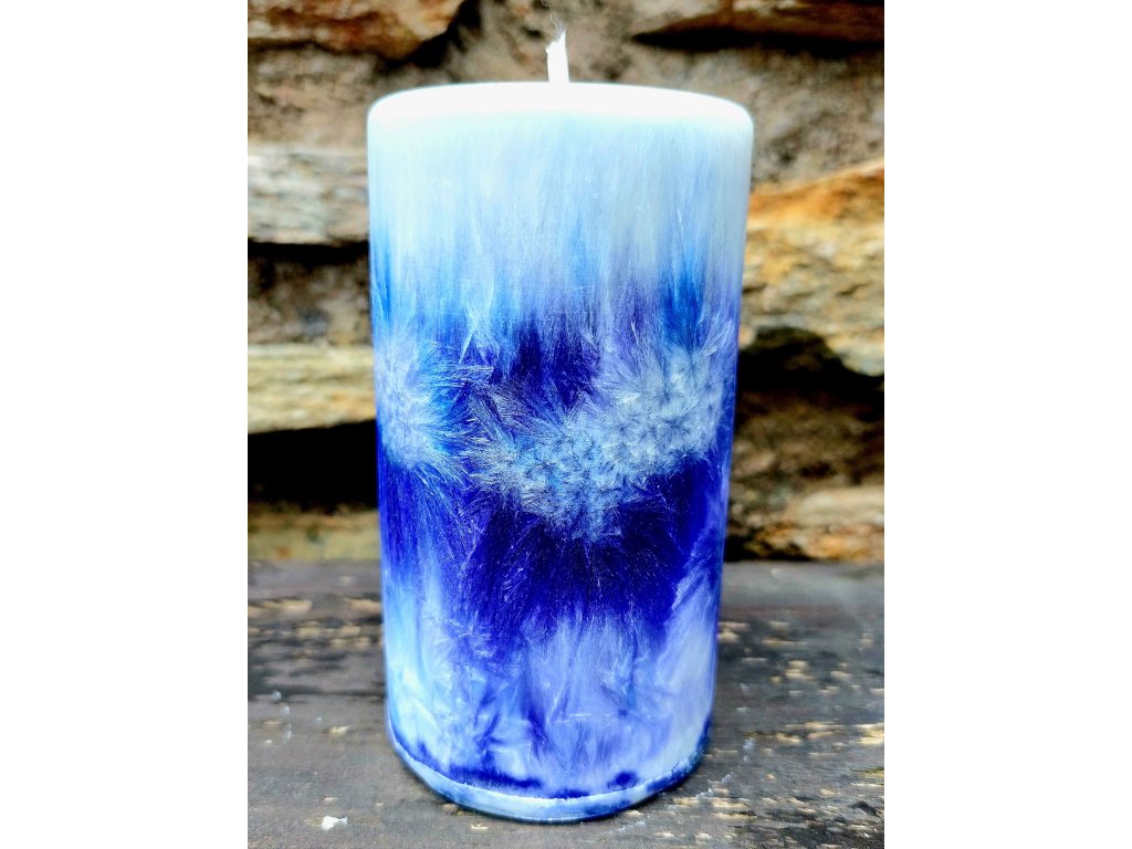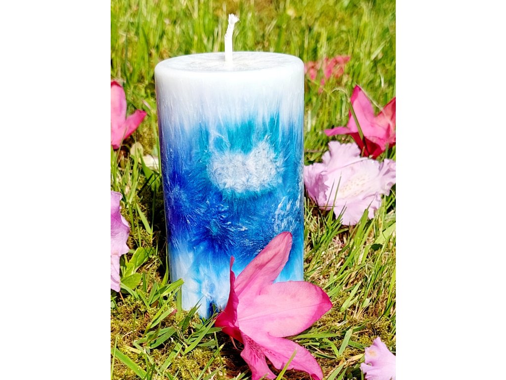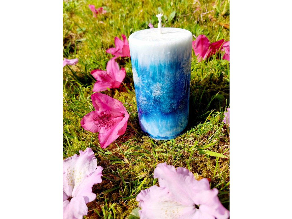 Mini svíčka v odstínech modré.